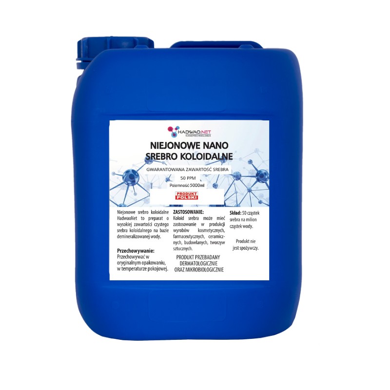 Oferowane przez nas roztwory niejonowego srebra koloidalnego to preparaty najwyższej jakości. Są to preparaty o stężeniu 50 ppm, co oznacza, że na milion cząsteczek wody przypada 50 cząsteczek srebra. Preparaty te występują w postaci równomiernej zawiesiny cząstek srebra i wyróżniają się lekko bursztynową barwą. Warto zauważyć, iż barwa srebra uzależniona jest od wielkości cząstki oraz jej kształtu. Zagłębiając się w lekturę naukową można potwierdzić fakt, że nano srebro koloidalne może przybierać barwę żółtą, bursztynową, różową a nawet niebieską.